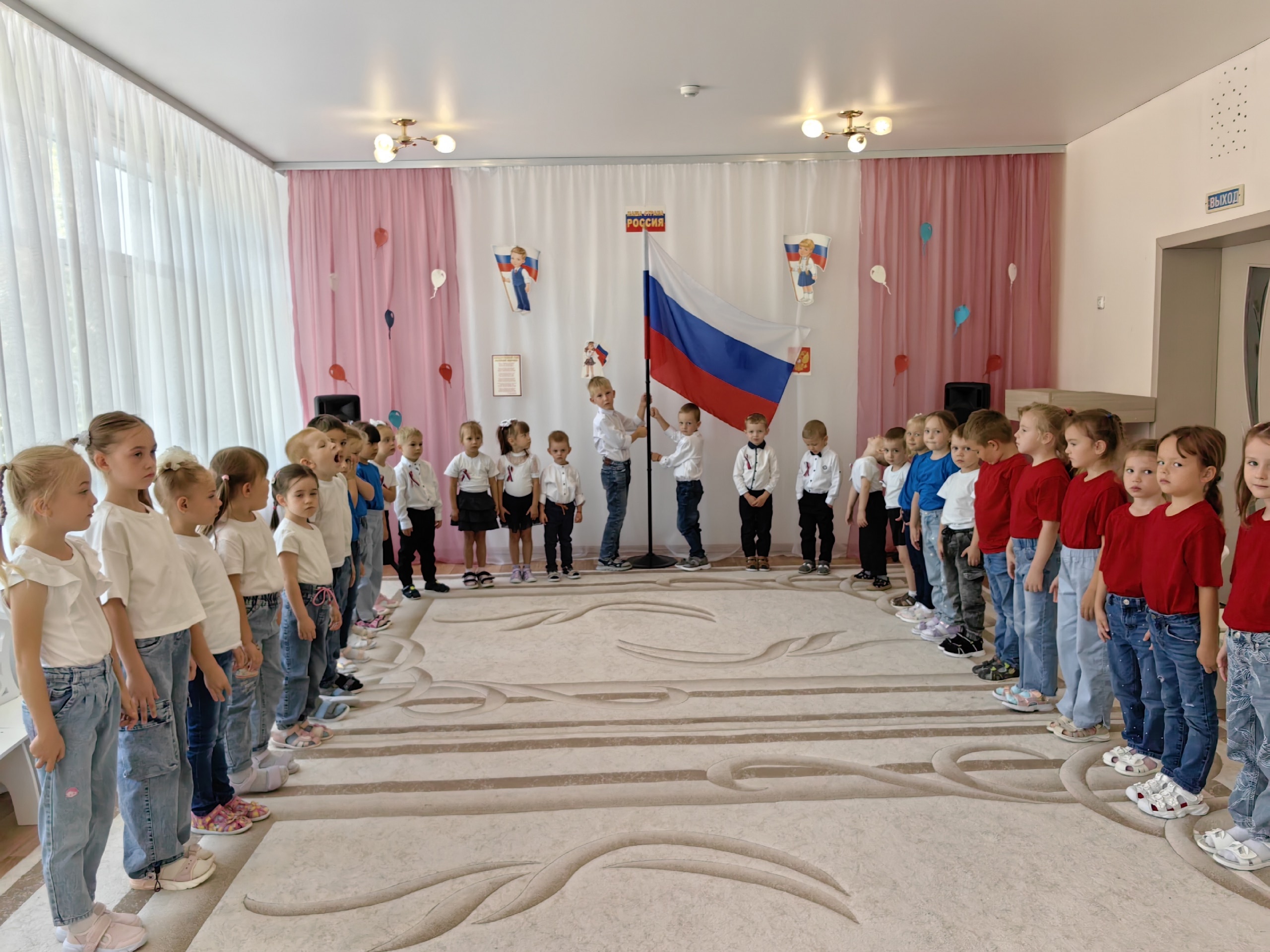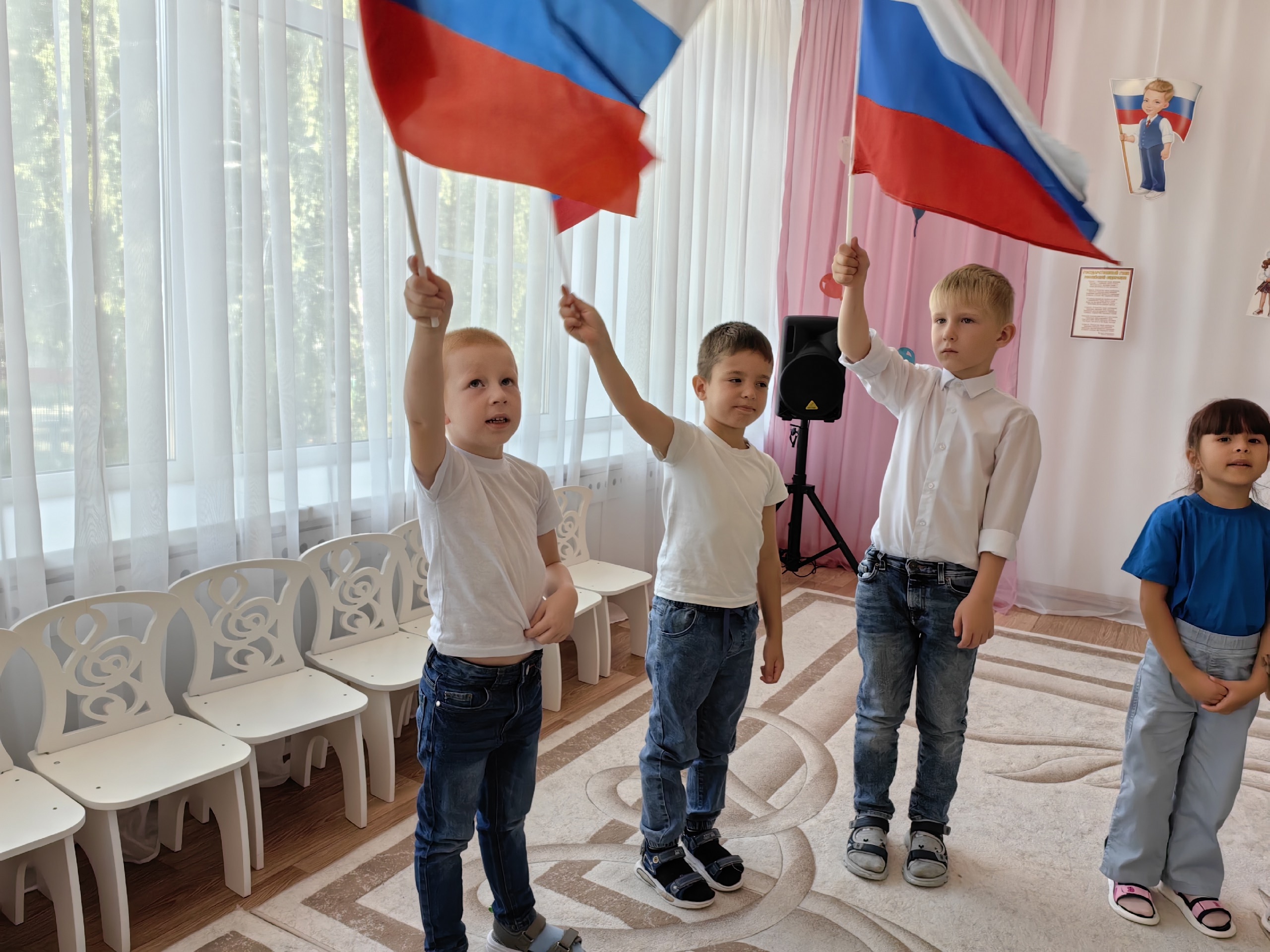 В рамках акции состоялось музыкально-познавательное мероприятие «Наш российский триколор»: прозвучал гимн Российской Федерации, торжественно поднят флаг, дети познакомились с историей создания флага, значением цветов, исполнили стихи и песни